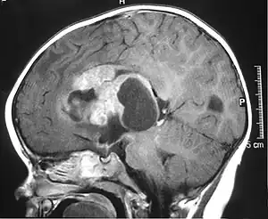 25. 1 2 Geyer JR, Sposto R, Jennings M, Boyett JM, Axtell RA, Breiger D, et al. (October 2005). "Multiagent chemotherapy and deferred radiotherapy in infants with malignant brain tumors: a report from the Children's Cancer Group". Journal of Clinical Oncology. 23 (30): 7621–7631. doi:10.1200/JCO.2005.09.095. PMID 16234523.