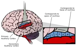 - ↑ Moerel, Michelle; De Martino, Federico; Formisano, Elia (29 July 2014). "An anatomical and functional topography of human auditory cortical areas". Frontiers in Neuroscience. 8: 225. doi:10.3389/fnins.2014.00225. PMC 4114190. PMID 25120426.