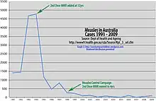 - ↑ Cooper, Dani (11 February 2009). "Australia declared measles free". Australian Broadcasting Corporation. Retrieved 16 May 2010.