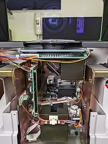 An autorefractor or automated refractor is a computer-controlled machine used during an eye examination to provide an objective measurement of a person's refractive error and prescription for glasses or contact lenses. This is achieved by measuring how light is changed as it enters a person's eye.