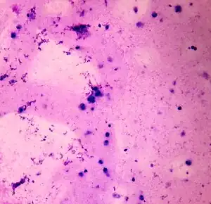 Semen analysis revealing no sperm cells and multiple white blood cells | |