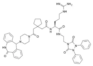 BIIE-0246 is a drug used in scientific research which acts as a potent and selective antagonist for the Neuropeptide Y receptor Y2.[1] It was one of the first non-peptide Y2-selective antagonists developed, and remains among the most widely used tools for studying this receptor. It has been used to demonstrate a role for the Y2 subtype as a presynaptic autoreceptor limiting further neuropeptide Y release,[2][3] as well as modulating dopamine[4] and acetylcholine release.[5] It has also been shown to produce several behavioural effects in animals, including reducing alcohol consumption in addicted rats[6][7] and anxiolytic effects,[8] although while selective Y2 agonists are expected to be useful as anorectics,[9][10] BIIE-0246 did not appear to increase appetite when administered alone.[11]