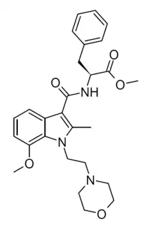 - ↑ Hynes Jr J, Leftheris K, Wu H, Pandit C, Chen P, Norris DJ, et al. (September 2002). "C-3 Amido-indole cannabinoid receptor modulators". Bioorganic & Medicinal Chemistry Letters. 12 (17): 2399–2402. doi:10.1016/s0960-894x(02)00466-3. PMID 12161142.