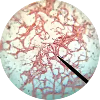 Bacillus subtilis spores can survive the extreme heat generated during cooking. Some B. subtilis strains are responsible for causing ropiness or rope spoilage – a sticky, stringy consistency caused by bacterial production of long-chain polysaccharides – in spoiled bread dough and baked goods.[72] For a long time, bread ropiness was associated uniquely with B. subtilis species by biochemical tests. Molecular assays (randomly amplified polymorphic DNA PCR assay, denaturing gradient gel electrophoresis analysis, and sequencing of the V3 region of 16S ribosomal DNA) revealed greater Bacillus species variety in ropy breads, which all seems to have a positive amylase activity and high heat resistance.[73]