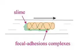 Gliding motility is a type of translocation that is independent of propulsive structures such as flagella or pili.[42] Gliding allows microorganisms to travel along the surface of low aqueous films. The mechanisms of this motility are only partially known. Gliding motility uses a highly diverse set of different motor complexes, including e.g., the focal adhesion complexes of Myxococcus.[43][44] The speed of gliding varies between organisms, and the reversal of direction is seemingly regulated by some sort of internal clock.[45]