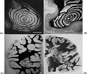 Baló's concentric sclerosis is a disease in which the white matter of the brain appears damaged in concentric layers, leaving the axis cylinder intact.[1] It was described by József Mátyás Baló who initially named it "leuko-encephalitis periaxialis concentrica" from the previous definition,[2] and it is currently considered one of the borderline forms of multiple sclerosis.