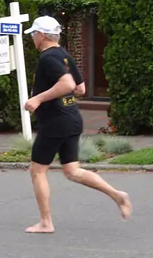 Barefoot running, also called "natural running", is the act of running without footwear. With the advent of modern footwear, running barefoot has become less common in most parts of the world but is still practiced in parts of Africa and Latin America. In some Western countries, barefoot running has grown in popularity due to perceived health benefits.[1]