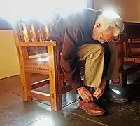 Bendopnea is a newly described symptom, normally of heart failure, meaning shortness of breath felt when leaning forward.[1][2][3][4][5] It was introduced by Thibodeau et al. in 2014.[1][2] Patients with heart failure often experience this when bending over to tie a shoe, putting socks on, or other activities requiring bending downwards.[1][2] It has been defined as occurring within 30 seconds of bending over, but could occur in as few as 8 seconds in severe cases.[3] When a patient is in heart failure, it often means the ventricular filling pressures are high at baseline.[1][2] When said person bends forward, it causes a further increase in ventricular filling pressures that causes dyspnea, especially in patients with lower cardiac indices.[1][2]