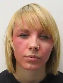 One in 500 people experience hypersensitivity with burning, itching, crusting, and possibly swelling.[17][18] About one-third of people experience phototoxicity under exposure to ultraviolet (UVB) light.[19]