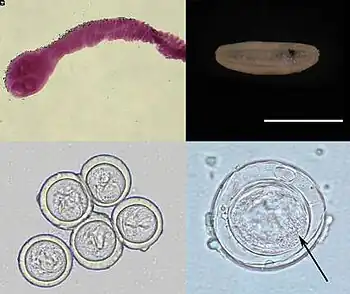 - ↑ Szyfres, B; Acha, PN (2003). "Bertielliasis". Zoonoses and communicable diseases common to man and animals (3rd ed.). Washington, D.C.: Pan American Health Organization. pp. 160–161. ISBN 9789275119938.