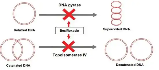The mechanism of action of besifloxacin involves inhibition of two enzymes which are essential for the synthesis and replication of bacterial DNA: the bacterial DNA gyrase and topoisomerase IV.