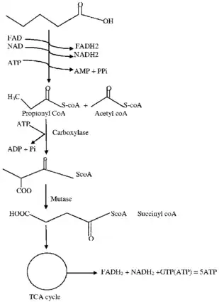 Steps in beta-oxidation of odd-numbered saturated fatty acids[15]