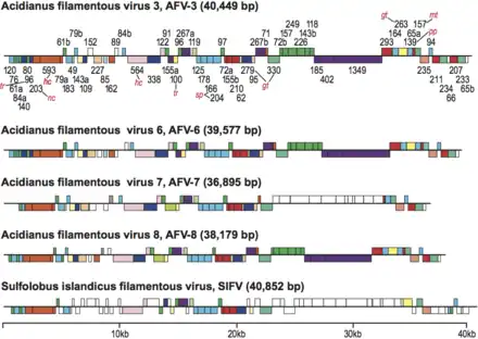 - ↑ Vestergaard, Gisle; Aramayo, Ricardo; Basta, Tamara; Häring, Monika; Peng, Xu; Brügger, Kim; Chen, Lanming; Rachel, Reinhard; Boisset, Nicolas; Garrett, Roger A.; Prangishvili, David (January 2008). "Structure of the Acidianus Filamentous Virus 3 and Comparative Genomics of Related Archaeal Lipothrixviruses". Journal of Virology. 82 (1): 371–381. doi:10.1128/JVI.01410-07. ISSN 0022-538X. PMC 2224351. PMID 17942536.