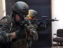 Some modern firearms are ambidextrous (e.g. the FN P90 and Heckler & Koch P7), or can be converted between right- and left-handed operation (e.g. the Heckler & Koch G36 and Steyr AUG). Bullpup rifles are particularly problematic for left-handers unless they can be reconfigured, since empty shells would be ejected straight into the shooter's face and cheek potentially causing injury, or otherwise designed from the ground up for ambidextrous use, often by way of complex ejection systems as seen on the FN F2000 and the Kel-Tec RFB. The British L85 Assault Rifle must be fired right-handed, placing left-handed soldiers at a disadvantage. In contrast, the Steyr AUG is a modular design and the ejection port and extractor can be switched/replaced to suit the handedness of the soldier operating it. The M-16 and its variants have a fixed ejection port, but being a conventional design (i.e. not bullpup) the ejection port is forward of the operator and hence able to be fired either-handed. Circa 1985, with the introduction of the M16A2 version, a case deflector was incorporated adjacent to the ejector port to direct discarded shells in a more forward direction, making the rifle even more left hand operator friendly. The deflector is not always effective, however, as the ejected shell still stands a chance of hitting the left-handed shooter's cheek, especially in windy conditions.