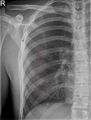 A bifid rib is a congenital abnormality of the rib cage and associated muscles and nerves which occurs in about 1.2% of humans. Bifid ribs occur in up to 8.4% of Samoans.[1] The sternal end of the rib is cleaved into two. It is usually unilateral.