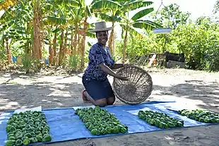 Harvest of capsicum grown with compost made from human excreta at an experimental garden in Haiti