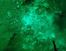 Biofilm of golden hydrophobic bacteria; ceiling of Golden Dome Cave, a lava tube in Lava Beds National Monument[21]
