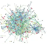 Interactions between proteins are frequently visualized and analyzed using networks. This network is made up of protein–protein interactions from Treponema pallidum, the causative agent of syphilis and other diseases.[59]