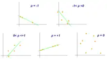 Scatter diagram that demonstrates the Pearson correlation for different values of ρ.