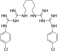 - ↑ Tanzer JM, Slee AM, Kamay BA (1977). "Structural requirements of guanide, biguanide, and bisbiguanide agents for antiplaque activity". Antimicrob. Agents Chemother. 12 (6): 721–9. doi:10.1128/aac.12.6.721. PMC 430011. PMID 931371.