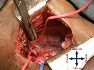 While the originally described Blalock-Taussig shunt directly connected the subclavian and pulmonary arteries, in contemporary practice a modified version of the procedure is more commonly used.[2] In the modified Blalock Taussig shunt a length of artificial tubing typically made from PTFE (Gore-tex) is sewn between either the subclavian or the carotid artery and the corresponding side branch of the pulmonary artery.[2] This modification removes the need to cut off blood supply and making it easier to regulate the blood flow to the lungs. Some centers now use a shunt directly from the right ventricle to the pulmonary artery, a Sano shunt. This is done to avoid the reduced diastolic blood flow in the coronary circulation associated with the Blalock-Thomas-Taussig shunt.