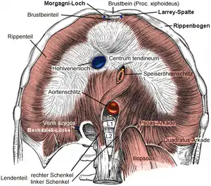 "Bochdalek", at lumbocostal triangle, labeled in bottom left (Captions in German.) | |