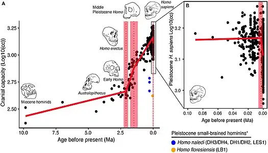 - 1 2 3 4 DeSilva, Jeremy M.; Traniello, James F. A.; Claxton, Alexander G.; Fannin, Luke D. (2021). "When and Why Did Human Brains Decrease in Size? A New Change-Point Analysis and Insights From Brain Evolution in Ants". Frontiers in Ecology and Evolution. 9: 712. doi:10.3389/fevo.2021.742639. ISSN 2296-701X.