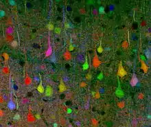 - 1 2 Cai, D.; Cohen, K. B.; Luo, T.; Lichtman, J. W.; Sanes, J. R. (2013). "Improved tools for the Brainbow toolbox". Nature Methods. 10 (6): 540–547. doi:10.1038/nmeth.2450. PMC 3713494. PMID 23817127.