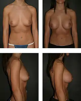 Breast augmentation and augmentation mammoplasty is a cosmetic surgery technique using breast-implants and fat-graft mammoplasty techniques to increase the size, change the shape, and alter the texture of the breasts. Augmentation mammoplasty is applied to correct congenital defects of the breasts and the chest wall. As an elective cosmetic surgery, primary augmentation changes the aesthetics  of size, shape, and texture  of healthy breasts.[1]