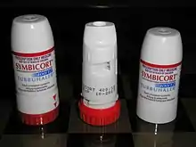 Budesonide/formoterol, sold under the brand name Symbicort among others, is a combination medication used in the management of asthma or chronic obstructive pulmonary disease (COPD).[2] It contains budesonide, a steroid and formoterol, a long-acting β2-agonist (LABA).[2] The product monograph does not support its use for sudden worsening or treatment of active bronchospasm.[2] However, a 2020 review of the literature does support such use.[6] It is used by breathing in the medication.[2]