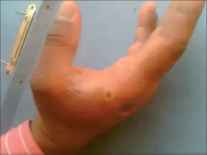 - ↑ Goyal T, Varshney A, Bakshi SK, Barua S, Bera BC, Singh RK (October 2013). "Buffalo pox outbreak with atypical features: a word of caution and need for early intervention!". Int J Dermatol. 52 (10): 1224–1230. doi:10.1111/ijd.12120. PMID 23834521. S2CID 23285568.