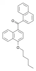 - ↑ Dziadulewicz EK, Bevan SJ, Brain CT, Coote PR, Culshaw AJ, Davis AJ, et al. (August 2007). "Naphthalen-1-yl-(4-pentyloxynaphthalen-1-yl)methanone: a potent, orally bioavailable human CB1/CB2 dual agonist with antihyperalgesic properties and restricted central nervous system penetration". Journal of Medicinal Chemistry. 50 (16): 3851–3856. doi:10.1021/jm070317a. PMID 17630726.