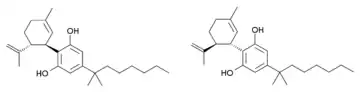 - ↑ Hanus LO, Tchilibon S, Ponde DE, Breuer A, Fride E, Mechoulam R (March 2005). "Enantiomeric cannabidiol derivatives: synthesis and binding to cannabinoid receptors". Organic & Biomolecular Chemistry. 3 (6): 1116–23. doi:10.1039/B416943C. PMID 15750656.