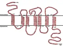 The CCR5 protein belongs to the beta chemokine receptors family of integral membrane proteins.[12][13] It is a G protein–coupled receptor[12] which functions as a chemokine receptor in the CC chemokine group.
