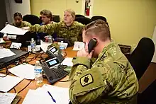 ![]() Arkansas National Guard soldiers staff phones for Arkansans' questions about COVID-19 | |