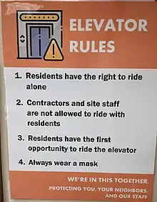 Boston Mayor Marty Walsh announced on April 2, that the Boston Convention and Exhibition Center (BCEC) would be converted into a 1,000-bed field hospital, which would later be named Boston Hope.[26] On April 5, Boston Mayor Walsh announced a voluntary city-wide curfew for non-emergency workers in Boston from 9 p.m. to 6 a.m.,[27] and asked all Bostonians to wear face coverings in public.[28] Governor Baker signed a law on April 20 banning residential and small business evictions and foreclosures on homeowners (other than emergencies), to remain in effect for four months or until the state of emergency is ended.[29] Governor Baker also announced on April 20 that Massachusetts schools would not return to in-person learning for the remainder of the academic year, and extended through June 29 a previous order to close non-emergency childcare services.[30]