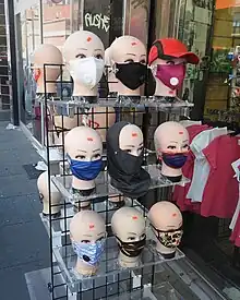 In early March, the New York Legislature granted Cuomo the power to temporarily suspend laws or create new laws to fight the pandemic.[98] Face masks were first mandated by law via an executive order issued by Cuomo on April 15. The order states that face masks must be in all public places when social distancing is not possible, as when people are within six feet of others.[99][100] On May 28, another executive order gave business owners the authority to decide whether patrons must wear a face covering to enter.[101]