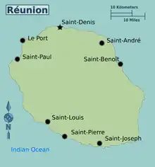 The COVID-19 pandemic in Reunión was a part of the ongoing pandemic of the Coronavirus disease 2019 (COVID-19) that was caused by the Severe acute respiratory syndrome coronavirus 2 (SARS CoV-2) and which was confirmed to have reached the French overseas department and region of Réunion on 11 March 2020.[3] On 20 May 2020, the first death was announced.[4]