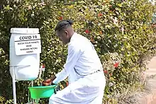 A hand sanitization station in Rwanda.