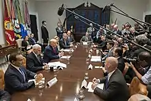 On December 31, 2019, China announced the discovery of a cluster of pneumonia cases in Wuhan. The first American case was reported on January 20,[15] and President Donald Trump declared the U.S. outbreak a public health emergency on January 31. Restrictions were placed on flights arriving from China,[16][17] but the initial U.S. response to the pandemic was otherwise slow, in terms of preparing the healthcare system, stopping other travel, and testing.[18][19][20][lower-alpha 1][22]