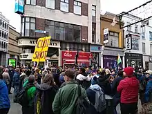 - ↑ Riegel, Ralph (6 March 2021). "Cork anti-lockdown demonstration staged without serious incident as Gardaí mount major security operation". Irish Independent. Retrieved 6 March 2021.