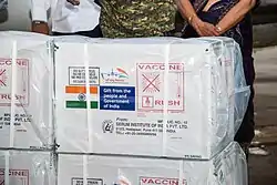 - 1 2 Bhattacherjee, Kallol (20 January 2021). "Coronavirus | India begins COVID-19 vaccine shipment for six countries-IN". The Hindu. ISSN 0971-751X. Archived from the original on 25 April 2022. Retrieved 15 March 2021.
