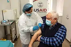 ![]() A Moldovan citizen receiving a Pfizer–BioNTech COVID-19 vaccine donated by the United States through the COVAX initiative in 2022 | |