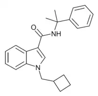 - ↑ Halter S, Pulver B, Wilde M, Haschimi B, Westphal F, Riedel J, et al. (October 2020). "Cumyl-CBMICA: A new synthetic cannabinoid receptor agonist containing a cyclobutyl methyl side chain". Drug Testing and Analysis. 13 (1): 208–216. doi:10.1002/dta.2942. PMID 33037749.