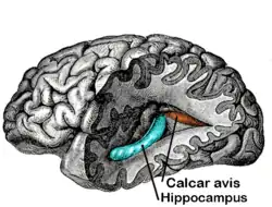 - ↑ Owen, C.; Howard, A.; Binder, D. (2009). "Hippocampus minor, calcar avis, and the Huxley-Owen debate". Neurosurgery. 65 (6): 1098–1104, discussion 1104–5. doi:10.1227/01.NEU.0000359535.84445.0B. PMID 19934969. S2CID 19663125.
