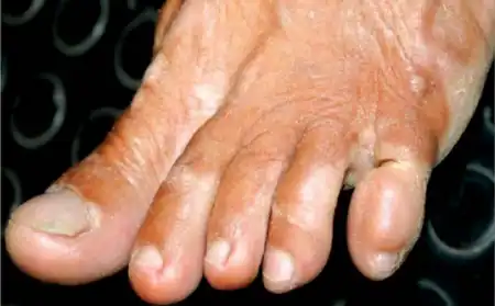 Constrictive bands on the fifth toe (pseudo-ainhum)