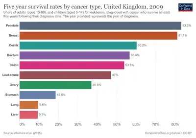 - ↑ "Waiting times for tests and treatment after cancer diagnosis". Cancer research UK. Archived from the original on 12 March 2017. Retrieved 10 March 2017.