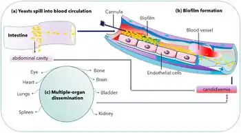 - ↑ Cavalheiro, Mafalda; Teixeira, Miguel Cacho (2018). "Candida Biofilms: Threats, Challenges, and Promising Strategies". Frontiers in Medicine. 5: 28. doi:10.3389/fmed.2018.00028. ISSN 2296-858X. PMC 5816785. PMID 29487851.