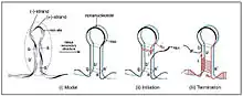 Rolling circle replication[3] is a method for replicating genomes that is seen most commonly in circular plasmids and genomes of bacteria and viruses. The important protein dimer that needs to be coded for in the DNA is the replication protein, Rep. Rep cleaves a location of the DNA exposing a free 3’ OH for viral or cellular polymerase to act on. DNA replication occurs in the nucleus of the cell in which this virus is small enough to enter into.