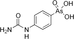 Carbarsone is an organoarsenic compound used as an antiprotozoal drug for treatment of amebiasis and other infections.[1][2][3] It was available for amebiasis in the United States as late as 1991. Thereafter, it remained available as a turkey feed additive for increasing weight gain and controlling histomoniasis (blackhead disease).[4][5]